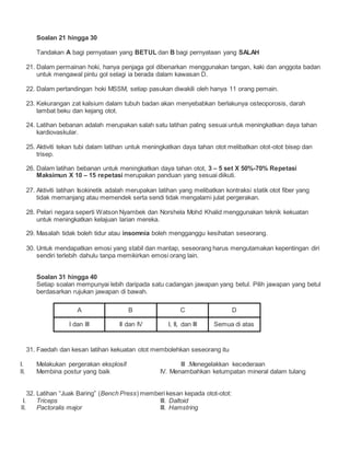 Soalan pendidikan jasmani Tahun 6 koon. Ujian mac PJK Tingkatan 4. Koleksi soalan pjpk tingkatan 2 dan skema jawapan 1.